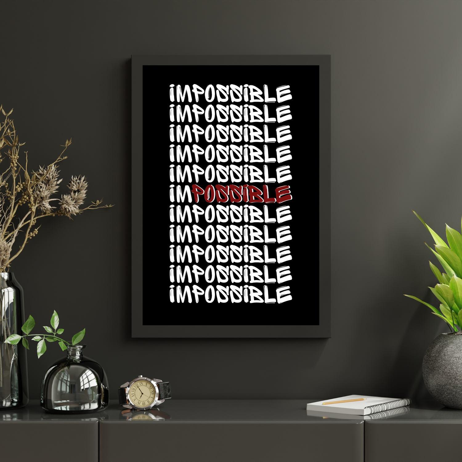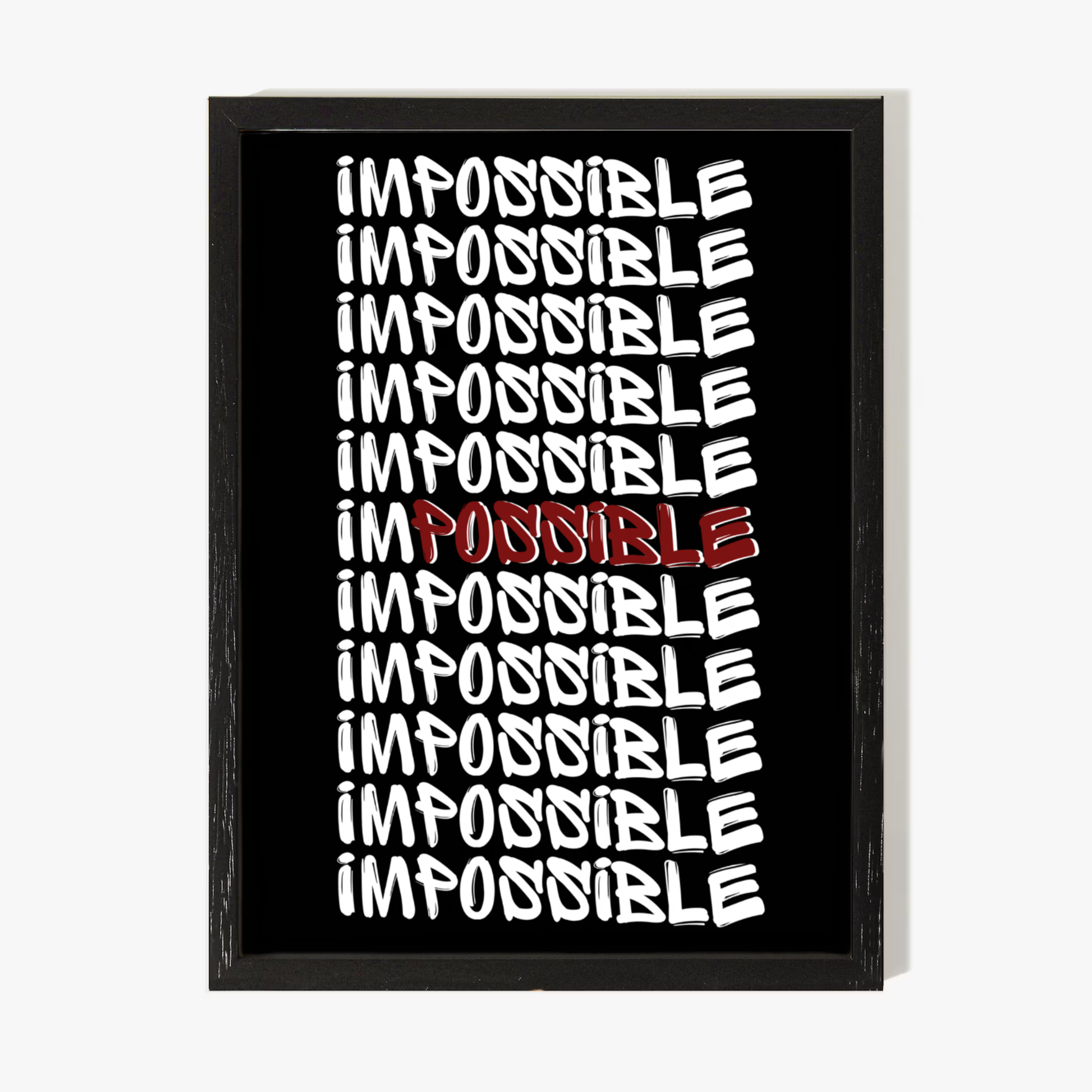 Cette affiche ne se contente pas d’embellir un mur : elle influence ton état d’esprit. Les jours où l’envie manque, où la fatigue s’installe, où l’objectif semble trop loin, elle devient une ancre mentale. Elle t’aide à transformer le doute en action, l’hésitation en discipline. Chaque regard posé sur le mot “IMPOSSIBLE” te rappelle que ce sont souvent les moments les plus difficiles qui construisent les plus grandes victoires.